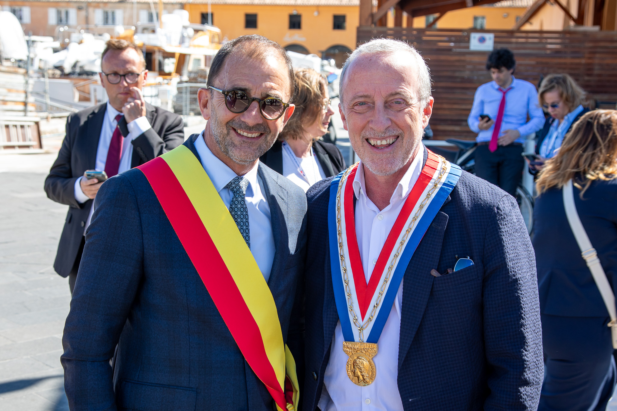 Ils ont été accueillis par M. le Maire Christophe Trojani, Christian Estrosi, Maire de Nice et Président de la Métropole, Roger Roux, Maire de Beaulieu-sur-Mer et Vice-président de la Métropole, Monica Laugier, Adjointe à la Culture, au Tourisme, à la Communication et à la Promotion de la Ville et Patricia Degus, Conseillère municipale à la Santé de la Population.